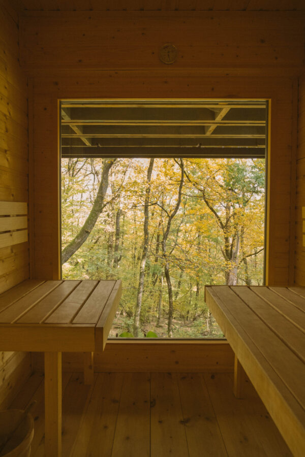 Erdei panorámás szaunánkban nyugodtan kipihenheted magad, relaxálhatsz.